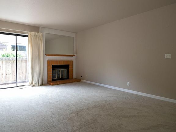 The spacious living room and adjoining dining area receive bright natural light from the large sliding doors that look out on your own private patio. This home has been fully updated with fresh paint, new carpet, new bathroom vanity, interior doors, new electrical sub-panel. New stainless oven/range and dishwasher brighten up the kitchen. Inside laundry. Washer/dryer and refrigerator are included. The two spacious ensuite bedrooms have soaring vaulted ceilings and large windows.