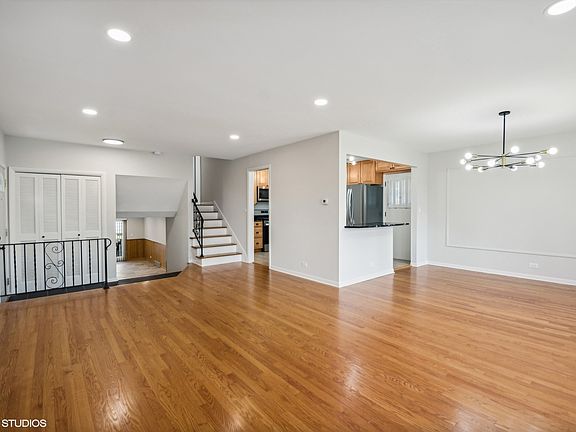 Discover the charm and convenience of this meticulously maintained and updated split-level home in Morton Grove. With 3 spacious bedrooms and 2 bathrooms, each providing generous closet space, comfort and privacy. Upon entry, you'll be greeted by a bright and airy open-concept living and dining area, featuring hardwood floors and expansive windows that invite natural light. The updated kitchen stands out with sleek countertops, breakfast bar, modern appliances, and 42 inch cabinets to provide ample storage, making it a true centerpiece for both everyday living and entertaining. The lower level offers a family room perfect for relaxation or hosting with easy access to the yard, complemented by a convenient laundry room and additional storage space.