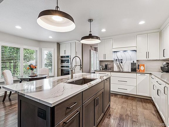 **Open Saturday October 4th from 10am-1pm** Every inch of this 5 bedroom, 3.5 bath home has been lovingly updated by the owners ($200k+ in updates) in Piney Creek East/Tuscany. High quality finishes (this is NOT a flip)! An entertainers delight- new Trex deck, huge paver patio with grill nook, professionally landscaped, low voltage lighting throughout. Kitchen has been remodeled down to the studs (2020), custom soft close cabinets with pull out shelves, Cambria quartz countertops, tile backsplash, pot filler, professional appliances including built in wine refrigerator, Monogram ovens, including 5 in 1 Advantium, Thermador Freedom induction cooktop, Miele dishwasher, etc. Smart home appliances and interior lighting. Designer interior and exterior paint, hand scraped solid hickory hardwood flooring, newer carpet and 5” trim throughout. All updated bathrooms. Custom closets installed, front and back exterior doors replaced. 3 car garage dry walled and insulated. Finished basement with wet bar, built in AV, bedroom, and 3/4 bath for guests. Updated mechanicals in 2018 including water heater, furnace with blue light, steam humidifier and 3 electrical panels with room for expansion. Roof replaced in 2018 and has brand new 5 year certification. Top rated Cherry Creek schools- walking distance to Rolling Hills Elementary, feeds into Grandview High School!!