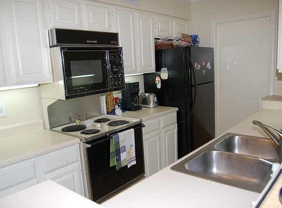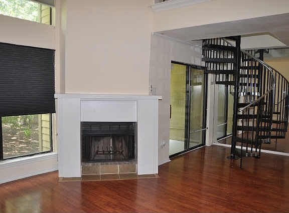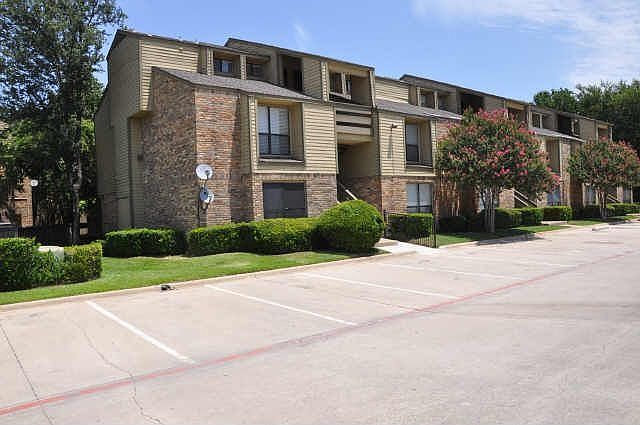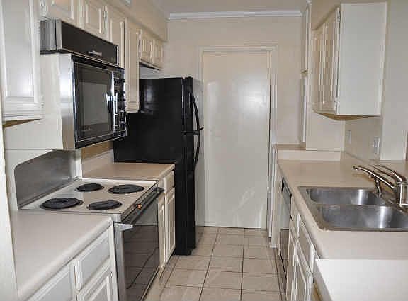 Two bedroom two bathroom condo in Dallas. The kitchen is open to the living room and features a breakfast bar. Community is gated, has a community pool, playground, and racquet ball area.