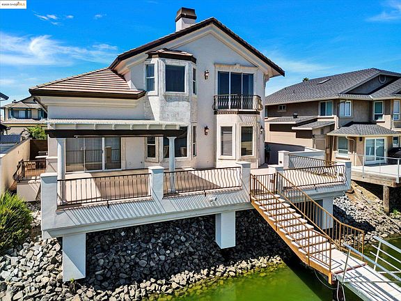 PREMIUM DEEP WATER LOCATION. Locals will tell you the is The Location in Discovery Bay. Delta Access Custom built home with rare and highly sought after South Eastern exposure and minutes to fast water, marina and gas! This home was built by a well known local builder for himself - and it shows in the design, function and quality. Double u dock with hydro-hoist and one covered port. Large deck. This 3774 sq ft gracious home is newly updated and beautifully rehabbed, featuring an extra large upstairs bonus space with a full bathroom. Upstairs laundry room. RV Parking! Stucco exterior has been freshly painted as well as the entire interior. Kitchen, newly updated, features granite counters. LV with fireplace and a wet bar the overlooking the water, perfect for entertaining; primary bedroom features its own fireplace and spacious bathroom and 2 closets. (Bathtub even has a water view!). Bright and clean 3 car garage with epoxy flooring. The large downstairs bedroom with full bath access and private entrance has possible in-law set up.