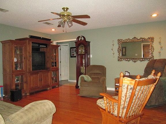 Country Living At It's Best! This is an absolutely wonderful 3 bedroom, 2 bathroom home on 9.99 acres of fenced land. Amenities include a Wood Burning Fireplace, Ceramic Tile, Hardwood and Laminate Wood Floor Coverings, Screened In Rear Patio, Front Porch, 2 Car Attached Garage, 30 x 40 Metal Workshop on Slab with Power, Water and Sewer, 12 Foot High 18 x 30 Metal RV/Camper Storage Building with Power, Water and Sewer, 6 Stall Barn, 36 x 40 Pole Barn/Tractor Shed and Numerous Pecan, Pine and Fruit Trees.