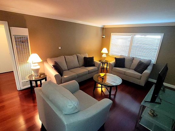 This first-floor unit in Cameo Woods is in excellent condition and newly painted has two bedrooms and 1.5 baths. The unit features the following amenities remote ceiling fans, all new kitchen appliances, recessed LED lighting, granite kitchen countertops, window AC, mirrored closet sliding doors in each bedroom, Pergo flooring throughout. The unit features a front and rear entrance for easy access to the single-car private garage with an automatic door opener. Located close to Downtown Culver City, the Hayden Tract, the metro rail, Kenneth Hahn State Regional Park, Baldwin Hills Scenic Overlook, Balona Creek walking, and bike trail to Playa Vista, Marina Del Rey, Duckwilder Beach, and not far from LAX. On-site is a beautiful pool, recreational area, tennis court, several heated spas, and community laundry facilities. There is a guard-gated entrance with 24-hour security and extra on-site parking. Also, the unit can be leased partially furnished with living room sofas and a bedroom set. A large Target store is located across the street that provides convenient shopping. This unit is available for immediate rental once all verifications are reviewed. Owner pays water tenant pays gas and electric.