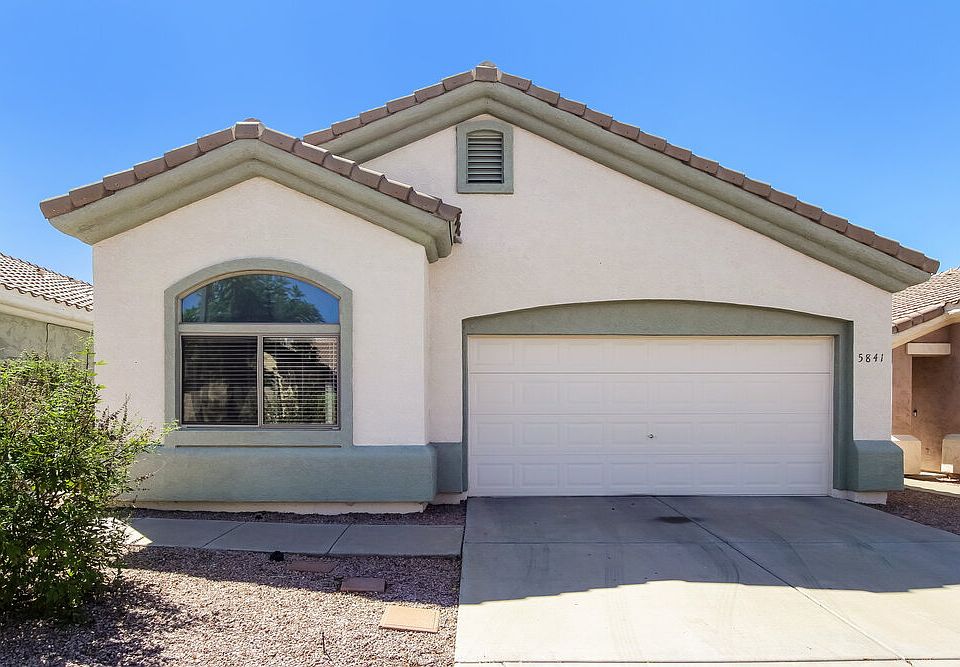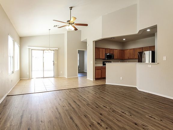 Make the most of the open floor plan of this two-bedroom rental home in Mesa. The living room's vaulted ceiling and fan promote a comfortable atmosphere for conversing with friends or streaming your favorite shows. A tiled floor adds style to the dining room, where there's a sliding glass door for easy access to the covered patio in the fenced backyard. In the kitchen, two walls of hardwood cabinets and a walk-in pantry make it easy to keep ingredients and dishes well-organized. Sleep deeply as the overhead fan in the master bedroom delivers a gentle breeze. Start each day by choosing an outfit from the private bathroom's walk-in closet and dressing at the dual-sink vanity.