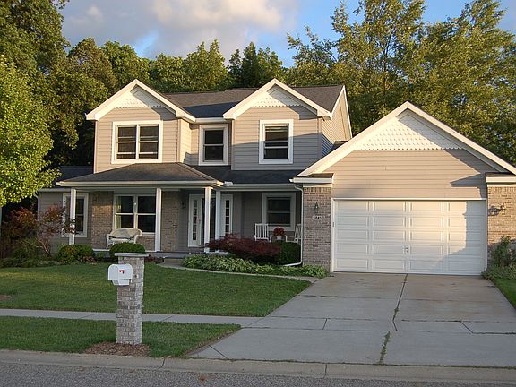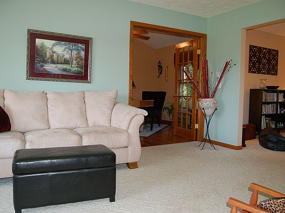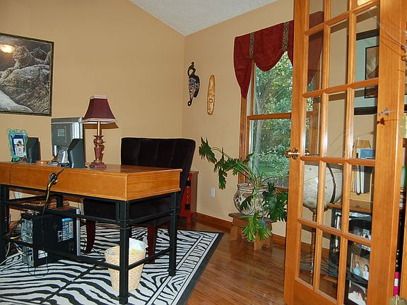 Beautiful home in the well loved Grovenburg Woods sub that sits on over a half acre private wooded lot. Updates include new carpet, new stainless kitchen appliances, subway tile backsplash & kitchen hardware. Huge great room w/beamed ceiling, gas fireplace & big windows w/views to back yard, formal dining room, & formal living room plus an office/den with hardware floors. Large updated pretty powder room and laundry on main floor. Ceramic flooring in kitchen, foyer & all bathrooms. Master suitewith walk in closet & hardwood floors, 2nd bedroom also w/hardwoods. Basement is plumbed for full bath.