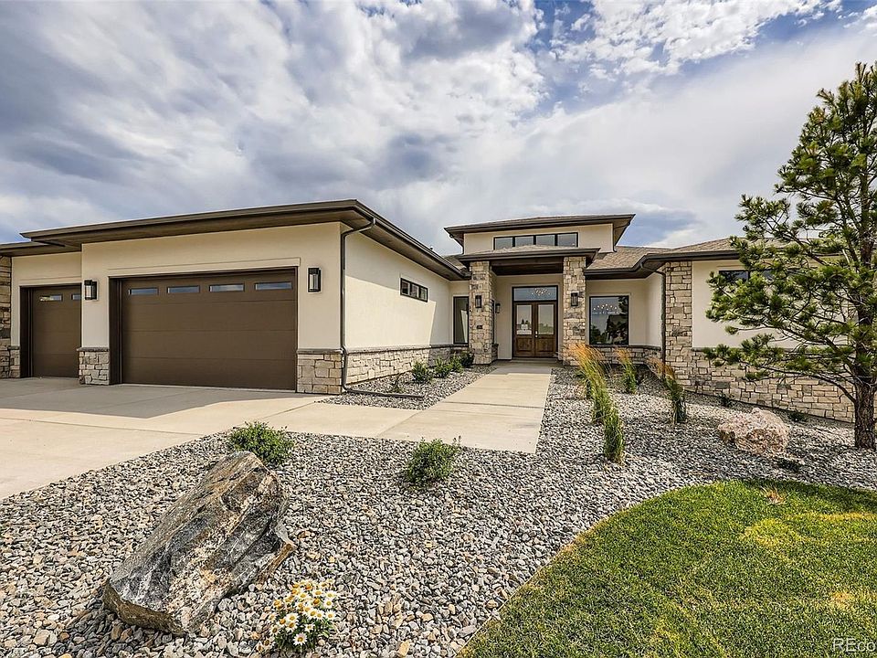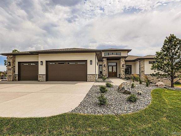 This exquisite Mountain Contemporary ranch-style home by renowned builder Gladstone Custom Homes is located in the prestigious Timbers at The Pinery subdivision in Parker, Colorado, offering a perfect blend of luxury, comfort, and stunning natural surroundings. The main level features two spacious bedrooms, including a serene primary suite designed for relaxation and privacy. The finished basement adds two additional bedrooms, a large recreation area complete with a cozy fireplace, an exercise room, and ample storage space with potential for future expansion, making it ideal for flexible living and entertaining. The home boasts custom, high-end finishes throughout, including designer appliances that enhance the modern kitchen’s functionality and style. The attention to detail is evident in every corner, from sleek cabinetry to premium fixtures, creating an elegant yet inviting atmosphere. Included in the purchase price is a full landscaping package, ensuring the outdoor spaces are as thoughtfully designed as the interiors, perfectly complementing the mountain contemporary aesthetic. Residents of Timbers at The Pinery enjoy optional access to the exceptional amenities of The Pinery Country Club and The Club at Pradera. These private clubs offer premier golf courses, tennis courts, swimming pools, fitness centers, and vibrant social calendars, providing a rich lifestyle experience. The Pinery Country Club recently completed a multi-million-dollar renovation, enhancing its clubhouse, dining, and recreational facilities to foster a warm, social environment for members and their families. Set amidst breathtaking mountain views and tranquil open spaces, this home provides a unique opportunity to live in one of Douglas County’s most sought-after communities. With its seamless combination of rustic charm and contemporary elegance, plus access to world-class amenities, this Mountain Contemporary ranch home in Timbers at The Pinery represents the pinnacle of Colorado living.
