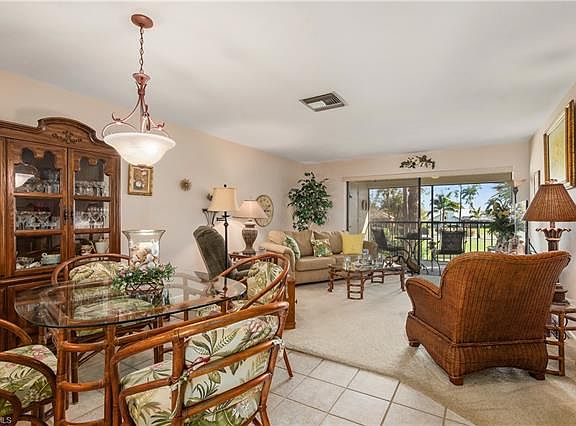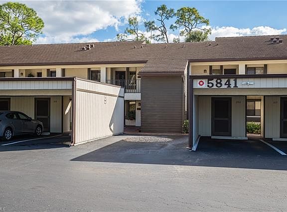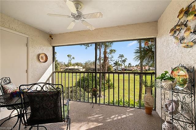 Perfect 2nd floor one bedroom, 1 1/2 bath Florida retreat in great condition offered TURNKEY/FURNISHED features a spacious 865 square feet under air which is larger than the two bedroom units in the community, a generous living room and dining area, kitchen with a pass-thru, newer refrigerator, new garbage disposal, new dishwasher, large pantry with lots of shelving, powder room with new toilet and valves, a comfortable bedroom with walk-in closet and extra shelving, new ceiling fan, en suite bath with new toilet and valves, new shower doors and grab bars, laundry closet with washer and dryer, extra storage and beautiful golf course views from the living room, bedroom and cozy lanai, just steps the community pool! Augusta Woods is a pet free community offering reasonable condo association fees and is in a terrific location just six miles to Downtown Naples and our award winning beaches, surrounded by shopping and dining!