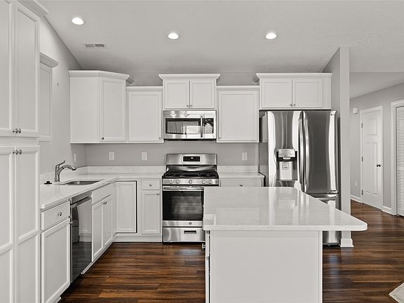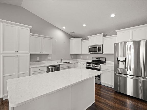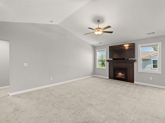 Cozy fireplaceOpen concept layoutStylish kitchenWalk-in closetMarble countertopsPrimary suiteStainless steel appliances