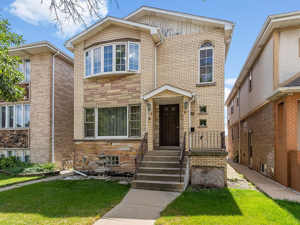 Brick and vinyl sided 2 flat located in the heart of Garfield Ridge. Each unit includes 3 bedrooms. The 2nd floor unit includes 2 bathrooms including a private master ensuite. Masterful architectural design on the 2nd floor with vaulted ceiling in the living room with 2 added skylights and bow window, utility room (behind cabinetry is laundry hookup). Spacious kitchen also has room for table space. Tankless water heater added in 2025 also HVAC in the 2nd floor unit. The main level has a remodeled kitchen in 2020 with 32" cabinets/granite countertops & farm sink with gooseneck faucet. Hardwood flooring on the main level. The living room is also connected for an electric fireplace. There is a finished basement with a full bathroom & possible related living. Recent updates includes garage built (2018), 2nd fl furnace (2013), roof (2013). Separate meters. 2nd floor smoke detectors are hard-wired.