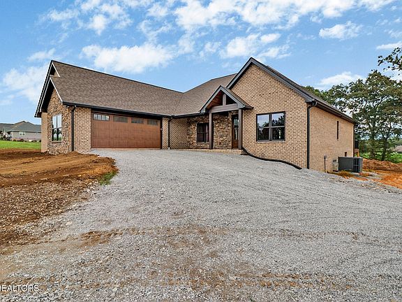 Exceptional New Construction with Gorgeous Mountain Views in Shadow Mountain Subdivision. Welcome to a stunning new stone-and-brick home that showcases the artistry and expertise of one of the area's premier custom builders. Every detail in this home reflects professional planning, flawless execution, and a commitment to quality that sets it apart. The open-concept design features a massive stone fireplace with built-in cabinetry that highlights beautiful stonework. The gourmet kitchen is complemented by a large custom pantry. Large windows flood the space with natural light, while multiple Trex decks and a covered concrete porch extend the living area outdoors, all designed with zero-entry access for convenience and style. This home offers three spacious bedrooms and 2.5 baths, with bathrooms finished in custom tile work that is as durable as it is beautiful. The master suite is a retreat of its own, with heated tile floors, a luxurious zero-entry shower, a walk-in closet with custom cabinetry, heated tile floors, and sweeping mountain views. The laundry room is equally functional and refined, with cabinetry and heated tile floors. An inviting office with oversized windows ensures a comfortable and inspiring workspace. Two garages for all your automobile and storage needs. The attached two-car garage includes a huge storage closet and convenient to the half bath, while a detached oversized brick two-car garage provides space for toys, vehicles, or a workshop.