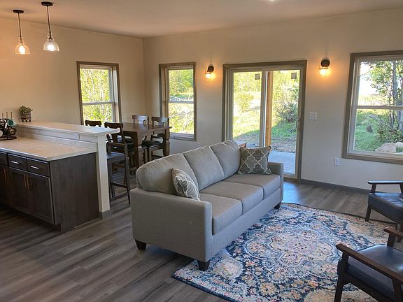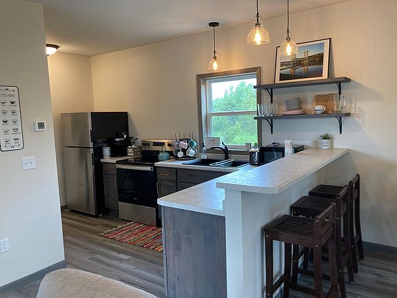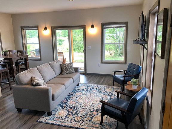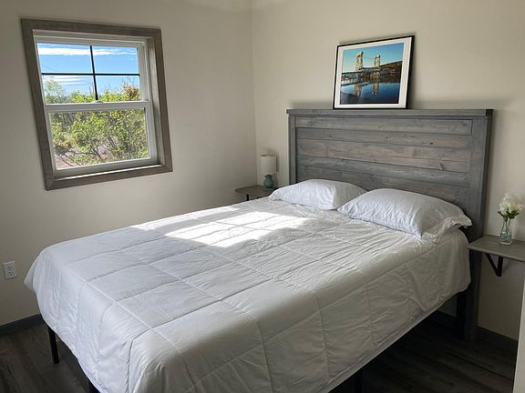 Open concept living room/kitchen on the ground floor provides area for meal prep and dining. Two bedrooms with queen beds upstairs along with the bathroom. Pullout couch in the living room. In floor heating. No pets allowed. No smoking.