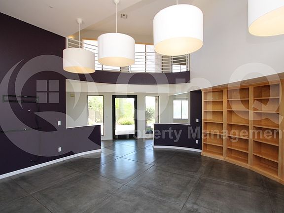 Owners are open to a 12 or 6 month lease for this impressive 3,700 square foot, four-bedroom, four-bath home in Carefree Mountain Estates. The custom two-story design features soaring ceilings, a gourmet kitchen, formal dining with a beehive fireplace, a spacious family room, a formal living space, and an upstairs loft. The home also includes two flexible downstairs dens with private entrances, a downstairs primary suite with walk-in closet, and three additional bedrooms with great privacy. The backyard is a true retreat with an infinity pool, spa, built-in BBQ, covered patio, and glass fencing, with pool and landscaping services included. Additional highlights include a laundry room with washer and dryer, a three-car garage, and a private cul-de-sac location within a gated community offering mountain and wash views.