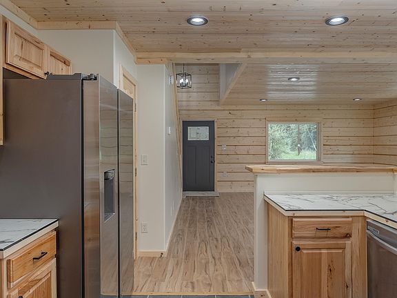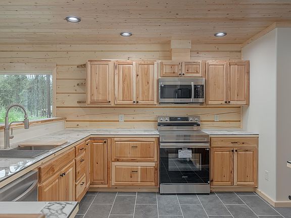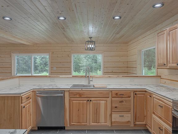 Brand New Log Home! This impressive three-bedroom, two-and-a-half-bath residence offers the ideal Alaskan experience. The open layout features large windows and a high ceiling, enhancing natural light throughout the living area. The kitchen is equipped with stainless steel appliances, ample cabinetry, and sleek countertops, including a butcher block for added functionality. A half bath and laundry area are located off the kitchen. Upstairs are the bedrooms, full bath, bonus room, and a spacious master suite with another full bath. The attention to detail in this build is noted throughout. A covered deck outside allows for enjoyment of many summer nights, and a heated garage provides storage for vehicles and toys. All this on over an acre is waiting for you to call it home!!