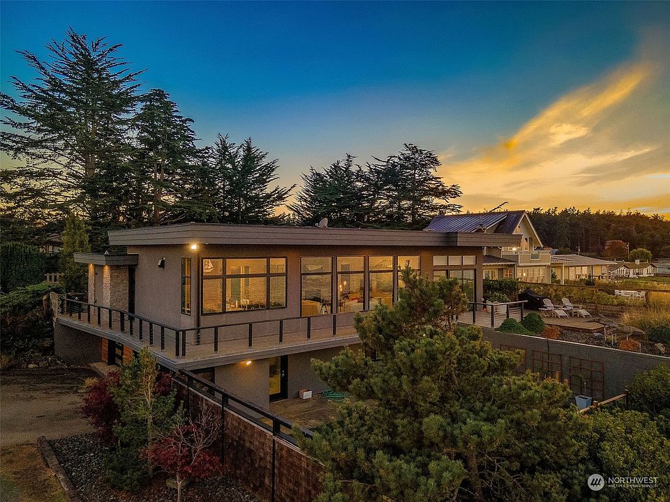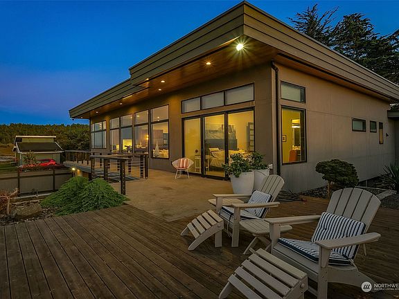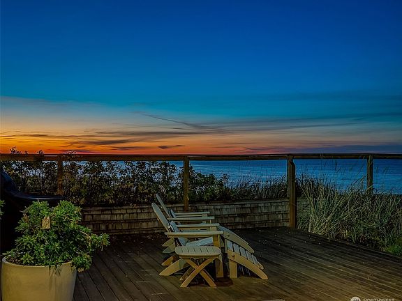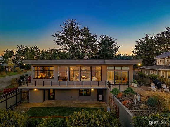 Stunning North Beach waterfront home with sweeping views of the Strait, the islands & Mt. Baker - and rare direct beach access! Beautiful, quality contemporary finishes throughout. An incredible wall of windows welcomes you & provides breathtaking ever- changing sky views. Great room with 12' ceilings with gorgeous fireplace for cozy storm watching. Chef's kitchen; with granite & stone countertops, propane range/double ovens. Media room, office, laundry room & additional den. Enjoy the sauna after your beach walk. 4 bds & 3.5 bths provide sufficient space for guests. Oversized 2 car garage & storage galore! Decks & dog run. Enjoy the beach, neighboring Fort Worden or the amenities of PT. Home as a serene getaway. Rare find.