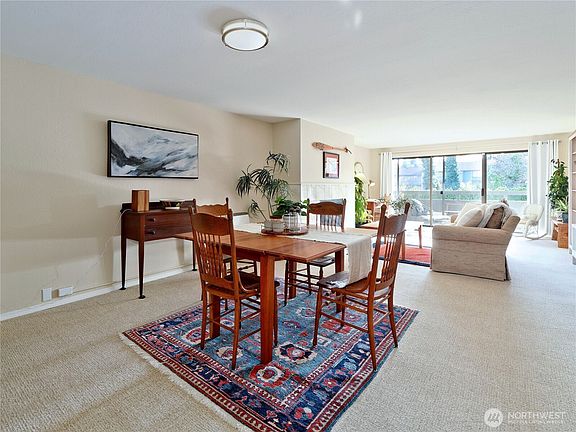 This bright 2-bed/1.75-bath condo offers a spacious, single-level layout w/a south-facing covered balcony overlooking lush, park-like grounds. Updated w/ENVI app-controlled radiators, cozy wool carpet, newer paint & hot water tank. The kitchen features SS appliances, quartz counter, formal dining plus a laundry w/generous pantry. The primary suite includes a sizeable WIC & walk-in shower. Enjoy a single car garage w/ample storage, an extra deeded parking space & resort-style amenities-indoor/outdoor pool, sauna, tennis courts & clubhouse. Just steps to the Burke Gilman Trail, Magnuson Park & Lake WA-perfect for biking, walking & embracing a true nature-loving lifestyle in the City. Mins from Seattle Children's Hospital, UVillage & UWMC.
