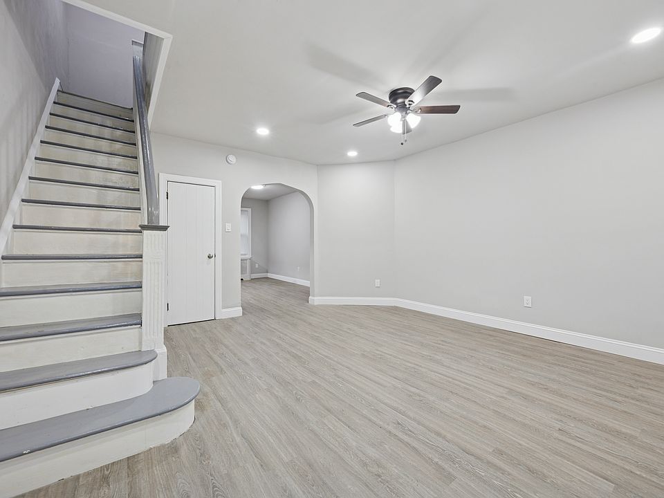 Charm Meets Modern Comfort! Discover this beautifully refreshed home featuring bright, spacious rooms with sleek new flooring and fresh paint throughout. Enjoy a sparkling, updated kitchen boasting stylish grey and white cabinetry, subway tile backsplash, and stainless steel appliances. Relax in inviting living areas, including a sun drenched bay window nook, and find convenience with ample closet space and well appointed bedrooms. The clean, updated bathroom offers a contemporary feel. A full basement provides excellent storage or future potential. Step outside to a private backyard oasis, perfect for unwinding. This home is a true gem, ready for you to move in and make it your own!