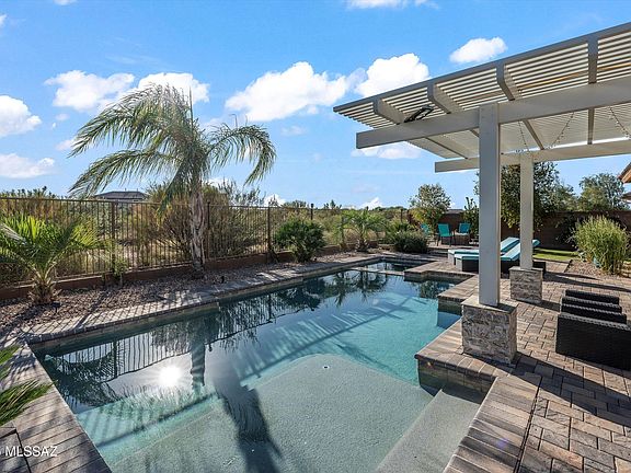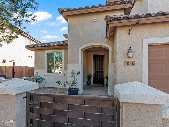 Updates abound in this exquisite 5-bed 4-bath residence featuring solar, an additional flex room, expanded 2 car garage with custom floors and dedicated work area. This home is located in thesought after Sierra Morado neighborhood and the award winning Vail school district. The home showcases updated floors and cabinetry throughout, creating a seamless blend of style andfunction. A stunning backyard retreat awaits with a sparkling pool, spa , firepit and outdoor shower. The beautifully landscaped grounds feature mature trees, palm and fruit trees along with shady patio and ramada space perfect for outdoor entertaining. Inside the bright open floorplan highlights soaring ceilings, abundant natural light and a chef-inspired kitchen with quartz countertops that opens to a spacious living area. The expansive primary suite offers a large window , inviting bath, walk-in shower, dual sinks and a serene ambience. The upper level