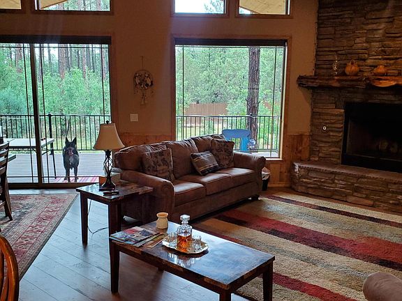 Perfect Mountain Home Located in the Starlight Ridge subdivision w/ towering ponderosa pines. The paver drive & walk way leads to a large front patio. The open floor plan is perfect for all gatherings. Custom granite countertops with designer back splash. Wood flooring and the T&G ceiling is wonderful mountain touches. Enjoy the spacious master suite w/ walk in closet, beautiful tile shower & door to deck. Walk in laundry room w/ storage area. The secluded feeling covered deck has Trex decking & overlooks the large fully fenced yard with the towering ponderosa pines for continued mountain living. beautiful move in ready home.
