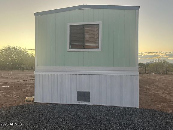 Experience peaceful desert living with this updated 2-bed, 2-bath mobile home on a spacious 1-acre lot surrounded by mountain views and clean desert air. Enjoy the comfort of a new septic system, quality private water well, updated plumbing, new skirting, and a durable metal roof built to last. Located on a paved road with easy access to I-10, you're just 45 minutes from Phoenix or Tucson — close enough for convenience, yet far enough for true tranquility. The property offers room to expand, with potential to build another home in front, making it perfect for investors, families, or anyone seeking space and freedom in the Arizona sun. Owner is also offering the opportunity to purchase the adjacent lot, allowing future owners the benefit of full water rights without the need to share.