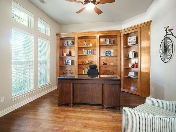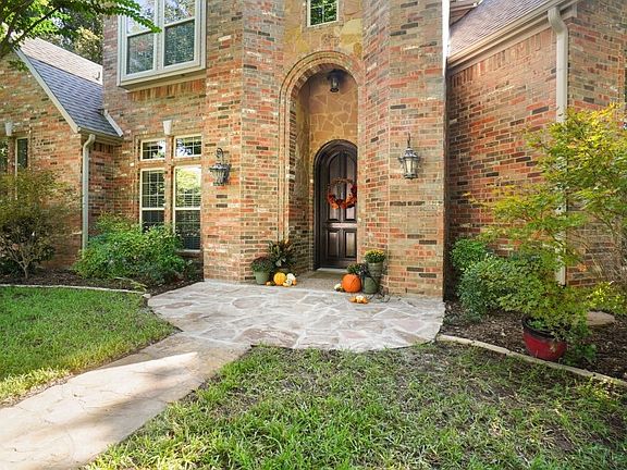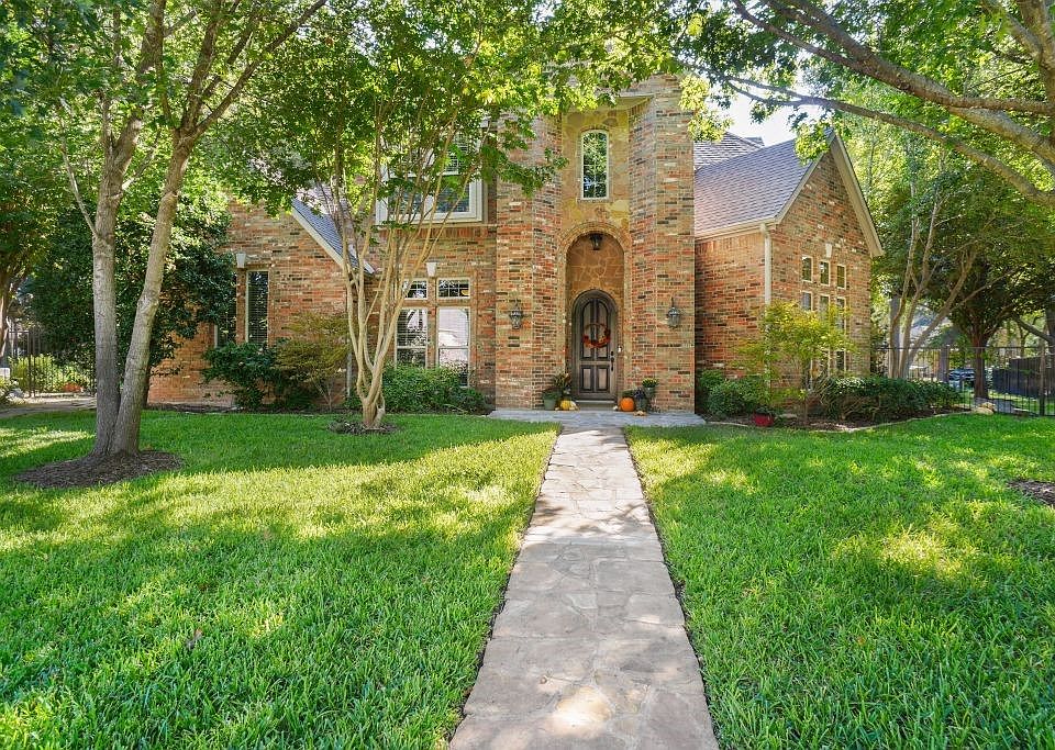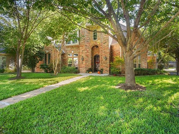 Beautiful well-maintained custom-built home nestled in at the end of a cul-de-sac street located in the prestigious gated neighborhood of Riverbend Estates. The home has 4 spacious bedrooms (2 downstairs 2 upstairs); 4 full baths, plus an upstairs second living area, a separate downstairs office-library with beautiful built-ins and a secret door passage. This home features an inviting open concept floor plan with a stunning staircase, extensive crown molding and trim work and built-ins throughout the home. The centerpiece of the home is the large kitchen, (which is open to the breakfast area, dining room, and living room) and features granite countertops, a large center island, a large counter seating area, stainless steel appliances, a gas cooktop, convection oven, and butler's pantry. The spacious master bedroom has a sitting area and en~suite bathroom with separate vanities, a garden tub, and large shower. All the bedrooms feature spacious walk-in closets. The large windows in the breakfast area, living room, upstairs living area and master bedroom overlook the oversized covered patio and beautiful landscaped back yard with large mature trees, creating a lush park like setting. This home also includes wrought iron fencing, a back entry driveway and roomy 3-car garage. The community has a gated security entrance staffed 24-7 and is conveniently located minutes from the popular Fort Worth Trinity Trails, and just 10 minutes from downtown Fort Worth, AT&T Stadium, and Global Life Field.