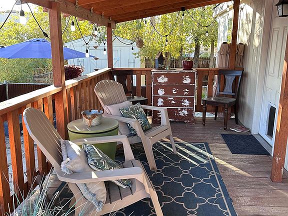 Yep! This is the cutest home in the park. Located on the very back row allowing for more privacy and a roomier lot. It is fenced in with big trees and a 10x10 storage shed. There is a cute flagstone patio on the front and all the furniture is included; also, an 8x16 covered wood deck. The home is a 2016 Clayton, double-wide, with a split-bedroom concept. Special features include central air conditioning, a kitchen pantry, newer carpet, and a primary walk-in closet. All the kitchen appliances are included, and the 2023 washer and dryer are negotiable. The HOA includes W/S/T, irrigation water, common area maintenance, and Spectrum cable/internet. Paradise Park is located in the center of Grand Junction and directly across the street from Pomona Elementary School, minutes from Hospitals, Mesa Mall, Grand Junction Regional Airport, shopping, restaurants, etc. The walkability is great! The affordability is great! New owners must be approved by the park manager and smaller pets are allowed with park approval. RV storage is available for an extra fee.