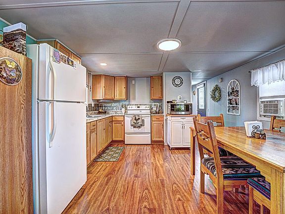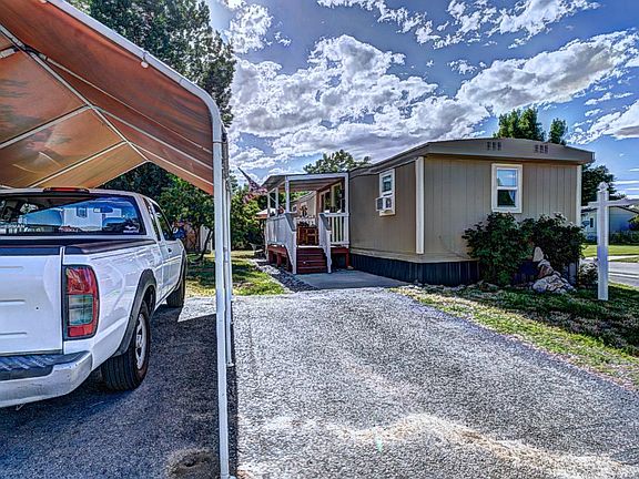 This recently remodeled home is waiting for you! This 2 bedroom 1 bathroom home was gutted down to the studs in 2021. During the remodel they put in all new sub flooring, new plumbing, updated the electrical, added new windows, doors and flooring, insulated the skirting and put in a new heating system and a hot water heater. The updates on this home makes it feel cozy and comfortable. This home is located close to shopping and restaurants and provides easy access to town. HOA includes water, irrigation, sewer, trash, basic cable and wired internet. A unique feature for this lot are the fruit trees and the covered carport! Enjoy fresh juicy peaches right out your door! This turnkey cozy home won't last long. Book your showing and bring us an offer! Our sellers are motivated!!