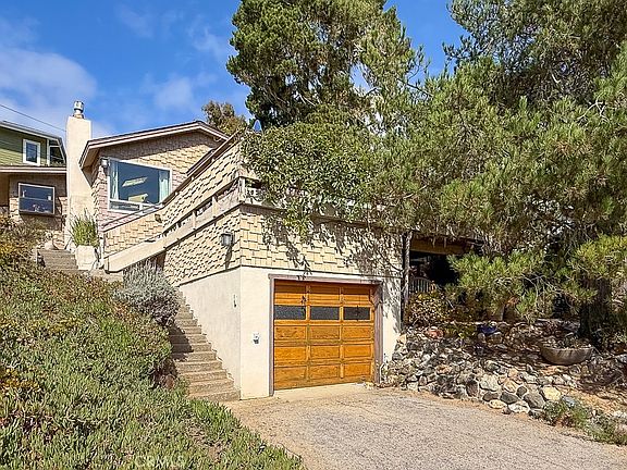 Romantic Ocean-View Cottage on peaceful Happy Hill!! Experience the best of coastal living in this established licensed vacation rental. Built in 1949, this storybook Cambria charmer blends ocean vistas with a serene, woodsy setting—where deer, wild turkeys, and herons are frequent visitors. Once you’re up the entry stairs, the home offers single-level living with vaulted wood ceilings, hardwood floors, and skylights that fill the space with natural light. Take in ocean views from the living room, kitchen, and primary bedroom, then step onto the deck to enjoy stunning white-water views and refreshing sea breezes. With three bedrooms and two baths, this coastal retreat combines comfort, character, and income potential—just blocks from Moonstone Beach and the West Village of Cambria with dining, shopping and wine tasting.