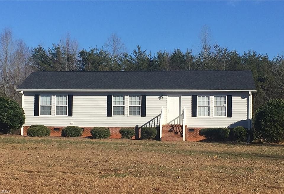 Cosmetically remodeled modular home with over 1450 sq feet located on 1.17 acres. Great split bedroom floorplan with 3 bedrooms and roomy closets. 2 full baths with dual sinks and walk in shower and garden tub in the master. Open floorplan with dining room with open, large kitchen. Kitchen has new countertops, new tile backsplash, and all new appliances. All new flooring and paint throughout. New roof, new heat pup, and new vinyl siding outside. Located outside city limits between Reidsville and Elon.