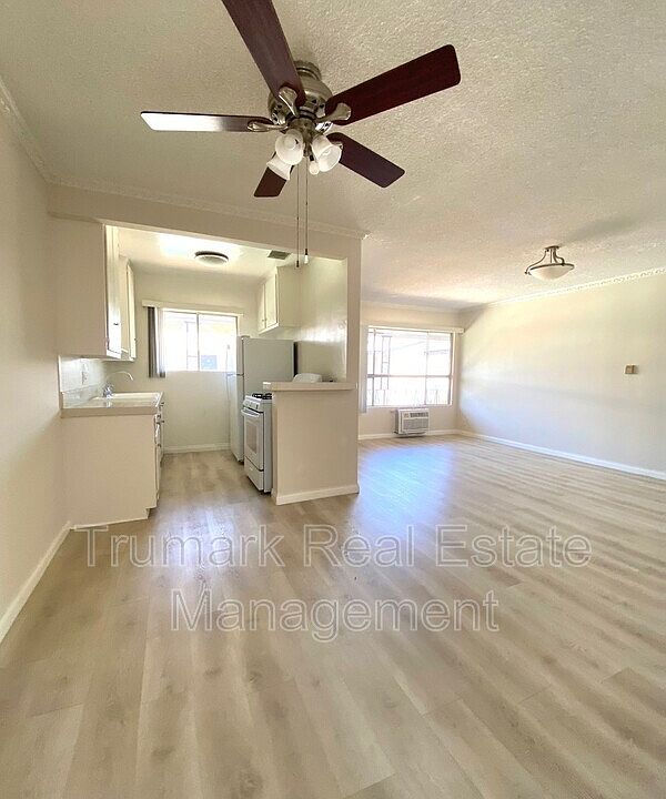 Trendy and Modern 1 Bedroom + 1 Bath upper Floor Unit that has been recently Renovated. This bright 1 apartment features sleek white appliances, ceiling fans & 2 wall a/c units throughout for optimum air flow during those hot summer months, plank flooring, & modern finishes. 1 parking space & Common Laundry included. Tenant pays all utilities.
