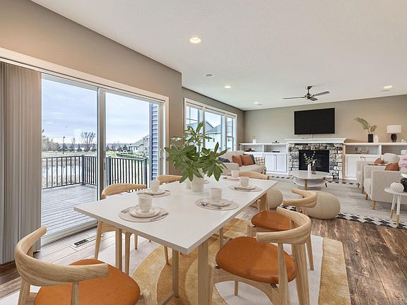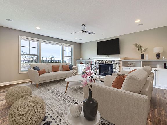 Welcome to 585 Jade Trail N — a sun-filled, beautifully designed home just outside the Twin Cities! This spacious property offers an open-concept main level perfect for modern living, featuring a bright kitchen, dining, and living room that flow seamlessly together. Large windows throughout the home fill every room with natural light, creating a warm and welcoming atmosphere. The living area includes custom built-ins and a cozy gas fireplace with a stunning stone surround, while sliding glass doors lead out to a back deck — perfect for relaxing or entertaining. The kitchen is thoughtfully designed with ample cabinet and counter space, a large center island with additional seating, stainless steel appliances, and an oversized walk-in pantry for extra storage. A private office and bonus room on the main level add even more flexibility for work, play, or hobbies. Upstairs, you'll find four generous bedrooms including a spacious primary suite with a walk-in closet and luxurious full bath featuring a dual vanity, separate soaking tub, and step-in shower. A convenient upper-level laundry room and a loft area add to the home's functionality and comfort. The finished walk-out lower level provides even more living space, offering a fifth bedroom, a third full bath, a large family room with a wet bar and beverage fridge, and access to a back patio. A large unfinished storage room and mechanical room provide excellent organizational options. The three-car garage provides plenty of space for vehicles, tools, and outdoor equipment.