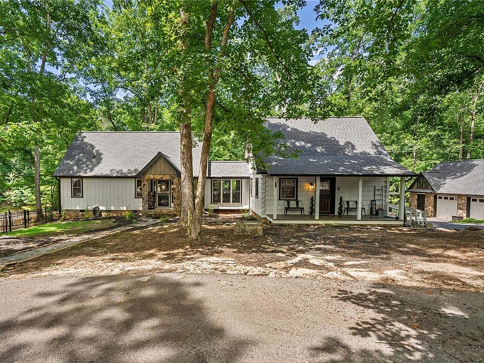 Must see this Charming Log Cabin with Acreage, Peaceful Pond Views, and Lake Access. Nestled on 18.712 acres in the scenic Paynes Creek area of Hartwell, this rustic home was originally built in 1989 as a log cabin weekend getaway. Over the years, it has been thoughtfully expanded and renovated, blending rustic charm with modern comforts. The original one-bedroom log cabin side has been transformed into a chef's delight kitchen, perfect for culinary enthusiasts or large family meals. This side also includes a cozy bedroom, a sunroom that invites in natural light, and a well-appointed bathroom. The upper floor features two additional bedrooms, providing ample space for family and guests. In 1998, the cabin was expanded with a two-story annex, which boasts a spacious living room with vaulted ceilings, hardwood floors, and a stunning stone fireplace. A loft area that sleeps two more overlooks the living space, and the master suite features a walk-in closet and a recently renovated private bath for a true retreat. The two sections of the home are connected by a glassed-in breezeway, and both wings offer front porches. The back of the property features a serene pond, shared with the adjacent landowner, creating a peaceful backdrop and offering wonderful wildlife views from your own back porch. See deer, turtles, herons, and more daily from your back porch, or walk down to the cove for the ultimate fishing honey pot! Use the trails in your woods for hiking or ATV fun! Launch your canoe or kayaks from your access to a private beach lake lagoon, or put a boat in just half a mile away at the Paynes Creek Boat Ramp. A marina with rental slips is only a short distance away! Properties like this one don't come around often. With its peaceful setting, spacious layout, and beautiful surroundings, this home offers the perfect blend of tranquility and convenience for year-round living or a serene weekend escape. Lake Lot is red zone and not Dockable. Don't let this unique property slip away- call agent today!