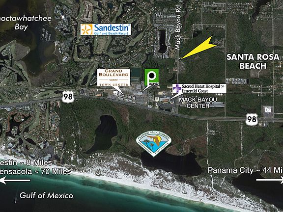 Prime, freestanding commercial buildings strategically located 1/4 mile north of Sacred Heart Hospital on Mack Bayou Road, offering a multitude of viable uses, not the least of which could be office, retail, and showroom, further permissible under the site's ideal zoning classification, Coastal Center, per Walton County, Florida's Land Development Code. Luxury Class A office/medical space in Mack Bayou Center is currently being offered for lease at $17+ psf + NNN.The parcel contains two structures: the main building measuring 3,400 SF, as well as a detached garage, all meeting the more stringent parking capacity required by code for medical uses. Perhaps specific uses could cater to medical, medical retail, sleep center, legal, accounting, real estate, home services and products, etc