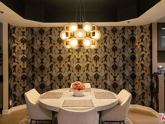 Hancock Park Elegance near Wilshire Country Club & Larchmont Village. Perched on the 4th floor of a meticulously maintained building, this exquisitely remodeled 1-bedroom condo is a study in refined Los Angeles living. Renovations include newly installed wide plank oak floors, bespoke designer wallpaper, Soho Home light fixtures, Farrow & Ball paint, added backlit wood paneling in the bedroom, and elegant wall molding in the living room. Floor-to-ceiling windows flood the space with natural light, while a gas fireplace adds warmth and a touch of cinematic drama. Both the bedroom and living room open to a balcony, creating a seamless indoor-outdoor flow. The bedroom offers a generous walk-in closet, and in-unit laundry ensures effortless day-to-day living. Located within the coveted 3rd Street Elementary district and just three blocks from the vibrant Larchmont Village, the location offers a convenient lifestyle with some of the city's finest dining, shopping, and culture. The building itself is a model of modern luxury, boasting a rooftop pool and newly renovated outdoor kitchen with panoramic views of the Hollywood Hills, and Griffith Park. Additional amenities include a freshly redesigned lobby, elevators, a state-of-the-art gym, secured keyless entry via facial recognition, 2-car tandem parking with an EV charger, and bicycle storage. Pets are welcome, completing a lifestyle of sophistication and convenience. Welcome home!