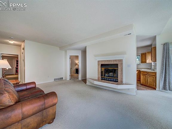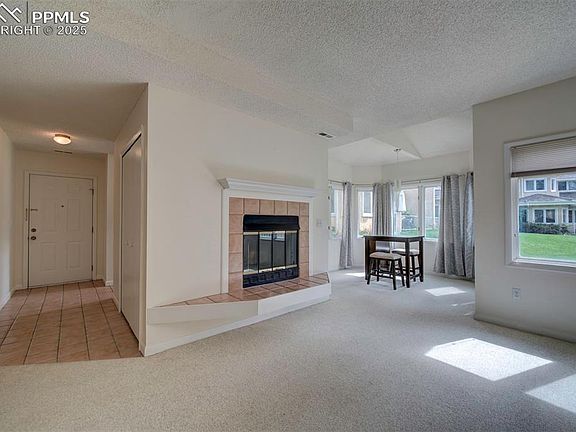 Welcome to this beautifully maintained 2-bedroom, 2-bathroom single-level condo in the desirable Promontory Point community. The living room offers a cozy atmosphere with a welcoming fireplace, a stunning hearth, and built-in storage. The dining area flows seamlessly to a private patio through French doors, where you can relax and enjoy the open green space. A spacious family room provides endless possibilities—perfect for a home office, exercise room, or entertainment area. Neutral paint throughout creates a clean, move-in ready feel, complemented by tile flooring in the kitchen and both bathrooms. With a timeless stucco exterior and durable tile roof, this home combines charm with low-maintenance living. Enjoy the tranquility of quiet west side living while being just minutes from downtown with convenient access to I-25.