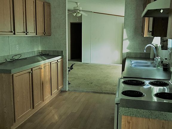 This home is considered real estate. It is taxed as real estate. Originally a double wide mobile home. The wheels and axels have been removed. There is a front porch and a side wrap around deck with a carport attached. There is an additional carport with a room housing a 2nd washer/dryer/ half bath and 2nd hot water heater. A barn and a large open shed for a sizable camper are also on this property.