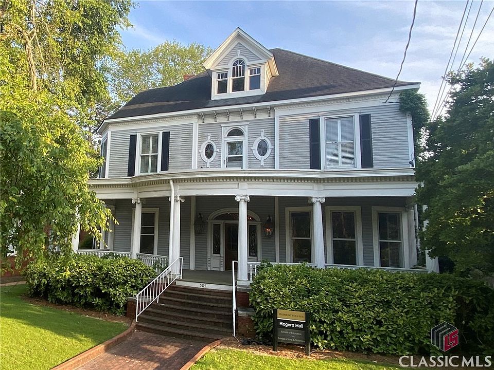 Prime Location on Prince Ave for this beautiful historic house, circa 1910. Zoned Commercial-Office, this one has huge rooms, high ceilings, hardwood floors, pocket doors, and stained glass. The house has 7 large rooms around wide central hallways. There are also several smaller rooms, 4 bathrooms, a kitchen, and a 534sf covered front porch.