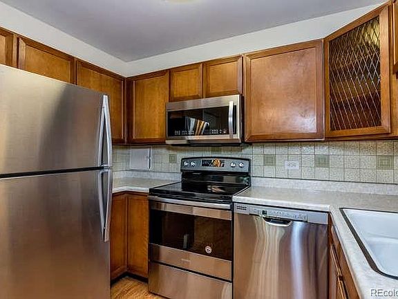 ATTENTION 55+ SENIORS: COME HOME TO WINDSOR GARDENS, Denver's premier 55+ adult community featuring resort-style living in the middle of town...golf course, golf shop, restaurant/bar, indoor and outdoor pools, hot tub, saunas, fitness center, pool hall, card rooms, library, woodworking shop, auditorium and activities galore! Very nice 1b/1b condo, 855 SF, penthouse level (4th floor) featuring vaulted ceilings, enclosed lanai, carpeting, new stainless appliances and newly painted throughout. Wall AC units in living room and bedroom. Bathroom has a cut-away tub for "walk-in" shower access. Looks out on grassy courtyard and views of the mountains. Additional storage closet on same floor plus cowboy storage unit in detached garage. 24/7 Community Response patrols for safety and resident assistance. PETS ARE WELCOME. NO SMOKING! At least one tenant must be 55+. All other tenants must be 17 or older. All residents must complete the Windsor Gardens orientation class and complete all Windsor Gardens required forms.