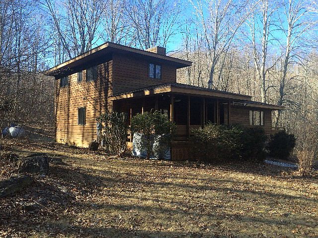 This is a perfect getaway home tucked away on 6+ very quiet, mostly wooded acres just a few minutes from historic Todd and within a short drive to Boone and the Jeffersons. House features open kitchen, dining area and living room on the first floor with bedroom, bath and laundry. Second floor offers master suite with whirlpool tub. Lots of big windows take advantage of the tranquil setting. Covered deck on the front and a large open side deck is accessible by the kitchen area. Lawn features low-maintanance landscaping, fire pits, and an open tree house off the circular front driveway. Property includes a small stream and a pond (currently drained). Lots of old fruit trees on the property and several large, ancient rock walls crisscross the wooded areas around the house. Existing hiking trail on property will take you up ridge beside house. New outbuilding with plenty of storage also on property. Covered front deck could potentially be converted to a third bedroom. Sellers will put $5,000 in escrow to be used for road maintenance.