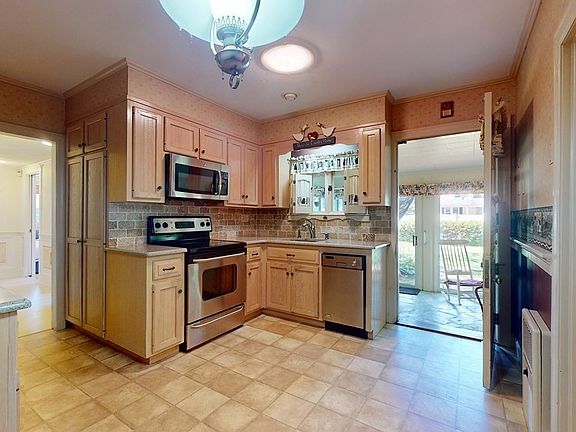 Looking for one level living, welcome to this beautifully maintained Ranch. Three bedroom and two baths with a oversized 2 car garage (garage can actually fit 3 cars) but can be used for work area or storage. Irrigation in front and back yards, gutter helmets, emergency generator hook up, Boiler 2011, second driveway on Everett St plus a garden shed in back yard are all examples of the extra care given to this property! Custom woodwork throughout house including crown molding, chair rails, custom built in bookshelves and beautiful moldings around doorways. Primary bedroom has private bath. Large 3 season room in back of house. Updated kitchen with full pantry and stainless steel appliances and hardwoods under most flooring. Third bedroom is currently being used as an office. Some finished space in basement not included in the sq footage. Close to Rt 495, shopping the commuter rail and downtown.