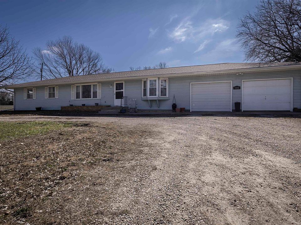 Love the country setting but dont desire the heavy maintenance farms require? Here we set, overlooking fields as far as the eye can see, the wildlife is incredible, sunsets and fog over the fields breathtaking. Birds, deer, turkey all actively roaming the area. Welcome to this beautiful ranch home settled on just under 1 acre plot but surrounded by fields and crop land providing a full country setting. So much opportunity to make the space in this home yours, for example. a secondary main floor rec room can serve as an extra large primary suite. Oversized bedrooms with great closet space throughout, large kitchen and living room spaces, with a beautiful walkout to your covered back deck, one of the largest we've seen. A partial fenced in yard, additional storage garden shed, attached 2 car garage and a full sized unfinished basement space ready for your customization such as another rec space? Bedrooms? Theatre room? Hobby space? You name it! Circle drive directly off pavement just a short distance from Carbondale and the park for Farmers Markets and a quick drive up 75 Hwy to Topeka's Forbes Field and more. So much opportunity. Kitchen appliances convey