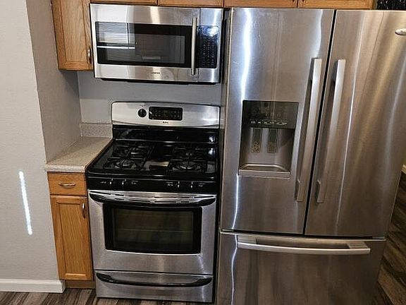 Remodeled Duplex, Stainless Steel Appliances, Plank flooring throughout, new paint, gas stove, large French door to second bedroom. Private laundry on side patio, private fenced back yard, Large side yard with tree shade, private 2 car covered carport, keyed storage shed 5'X10', walking distance to downtown chandler and shopping.