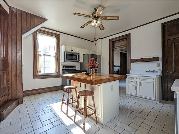 Welcome to your new haven! This home seamlessly merges spacious rooms with an abundance of character mixed with modern charm. Enjoy the luxurious feel of new carpet underfoot as you navigate the generously sized living areas. The large one car garage offers both convenience and security, while plentiful storage spaces ensure a clutter-free lifestyle. Lots of kitchen pantry space cater to your organizational needs and a built-in dining room cabinet adds a touch of sophistication. Step outside to the large back deck, an ideal setting for entertaining under the stars. Relax on the covered front porch, embracing a cozy ambiance or cozy up in front of the gas fireplace during winter nights. Embrace the perfect blend of spaciousness, character, and contemporary comfort in this inviting abode.