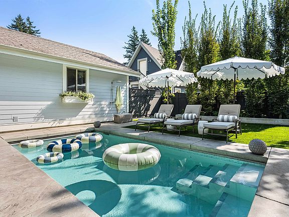 Absolutely STUNNING, Spruceland built home in Garrison Crossing with a backyard that truly sets it apart! Step into your private oasis featuring a SPARKLING INGROUND POOL, stamped concrete deck, outdoor shower and low-maintenance artificial turf, all surrounded by lush, mature trees that provide maximum privacy and a resort-like feel. Inside, this SHOWHOME WORTHY property shines with a dream kitchen—large island, upgraded appliances, stylish lighting and oversized windows that fill the home with natural light. Enjoy fresh paint, some updated flooring, custom cabinetry in the basement, A/C, built-in vacuum and easy suite potential. Every detail has been thoughtfully updated with serious Jillian Harris vibes—MODERN, BRIGHT & EFFORTLESSLY BEAUTIFUL. This is the one you’ve been waiting for!
