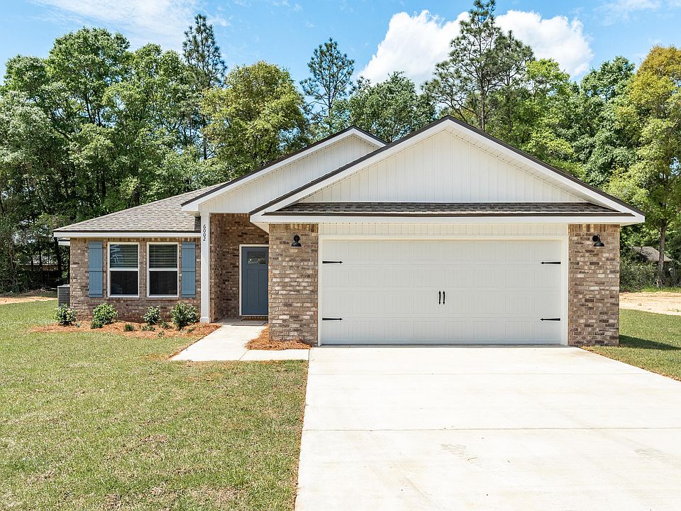 The ''Jackson'' plan has a spacious functional flow, featuring open family room/kitchen/dining. The work island has bar seating, cozy dining nook, overlooking covered rear porch. Quartz countertops, white shaker style cabinets. Owner's bath has double vanities, linen storage, generous walk-in closet. Split bedroom plan, luxury vinyl plank flooring in common areas, carpet in bedrooms. Finished garage, fully landscaped yard. NO HOA - 1/2 ACRE!! Call to see today. Home will be completed Early Nov.Photo of a similar home completed. Elevation may vary as well as interior/exterior colors. Seller will contribute up to $10,000 towards closing costs and/or prepaids and/or rate buydown (restrictions apply).