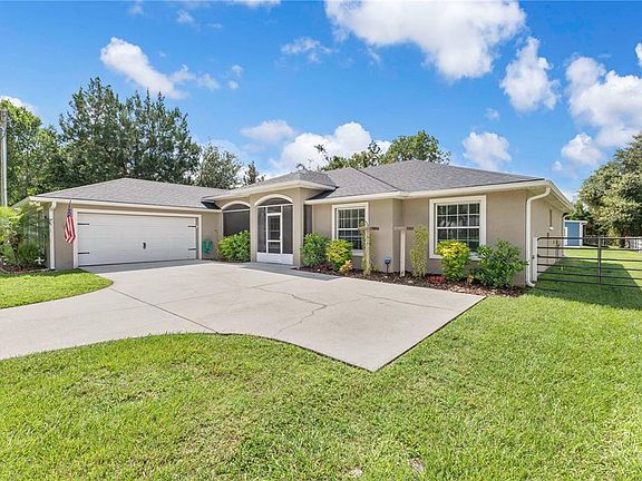 This stunning 4-bedroom, 3-bathroom home sits on a large lot with no HOA and a massive 50x50 enclosed pole barn—perfect for storage, hobbies, or extra workspace. As you step through the front door, you’ll be greeted by an open formal living and dining area that flows seamlessly into the beautiful kitchen, featuring solid wood cabinets, quartz countertops, and a cozy breakfast nook. The oversized master suite boasts a spacious walk-in closet, luxurious soaking tub, and separate shower. Three additional bedrooms filled with natural light provide plenty of space for family, guests, or an office. Step outside and enjoy a screened-in patio overlooking the sparkling new pool (2023)—perfect for relaxation or entertaining. The expansive lot offers plenty of parking and room to spread out. This home has also been thoughtfully updated for peace of mind and comfort. In 2025, it received fresh interior paint and a new driveway. In 2023, the pool, lanai, and gutters on both the house and barn were installed. Just a year earlier, in 2022, the roof and hot water heater were replaced, the A/C was upgraded to a powerful 5-ton variable speed system, and the 50x50 pole barn was fully enclosed. With space, upgrades, and freedom, this home truly has it all. Don’t miss your chance to own this beauty—it won’t last long!