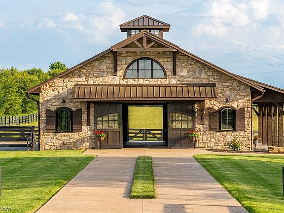 Welcome to an extraordinary estate offering over 8,000 square feet of luxurious living space, set on 19.5 acres of picturesque landscape. This magnificent property boasts a walk-out lower level, a large saltwater pool, a 6-car garage, a stunning stable/entertainment area, and a beautifully maintained, fully stocked pond. This property is perfect for equestrians, featuring a beautiful 2-stall horse stable with a wash rack, a paddock, and 10 acres of pasture, along with a feed/tack room. The expansive first-floor primary suite is a sanctuary of comfort, featuring a cozy fireplace, dual vanities, a soaking tub, a shower, and another fireplace in the primary bath. The heart of the home is the stunning kitchen, designed for both everyday living and grand entertaining. It seamlessly flows into a spacious great room with a striking stone fireplace. For formal gatherings, the elegant dining room provides an open and inviting atmosphere. The first floor also includes a beautiful office, offering serene views of the meticulously maintained, fully stocked pond. Upstairs, you will find three generously sized bedrooms, each with its own bath and walk-in closet, as well as a versatile living/media room. The walk-out lower level is an entertainer's dream, featuring a large family room with a stone fireplace, an exercise room, a bar, and a game area. Step outside to enjoy the meticulously landscaped grounds, complete with a heated saltwater pool, perfect for relaxation and entertainment. The stable is ideal for horse enthusiasts or can be transformed into an additional living or entertainment space. This property combines elegance, functionality, and natural beauty, with over $1 million in upgrades throughout. Easy access to expressways and shopping, yet secluded for your privacy. There is so much to mention, we have a feature sheet for you. Don't miss the opportunity to experience this extraordinary estate.