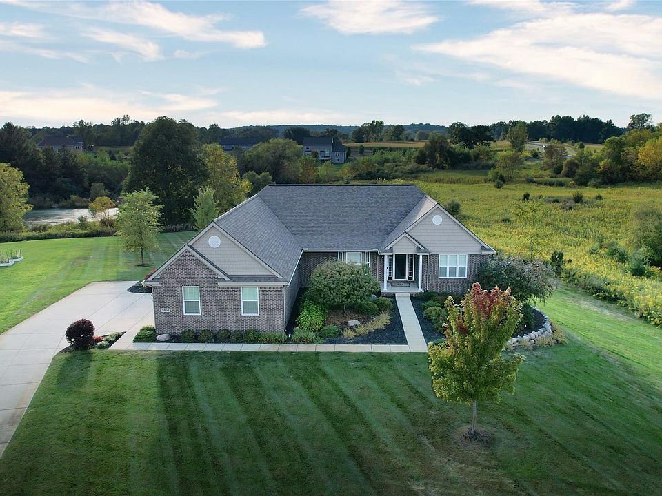 Set on quiet cul-de-sac in desirable Hartman Farms, hard to find ranch home w/custom floor-plan & finished walk-out basement. Professional landscaping with trees, Trex decking/stamped concrete patio w/fire ring. New roof in 2022, Invisible fence in 2021, smart locks at entries. Nest Thermostat, Radon Filtration system. Premium lot w 0.75 acres that backs to common area & water view! Kitchen: granite, tile backsplash, gas stove, SS appliances, breakfast nook with lots of natural light & Separate Dining RM. Primary Bedroom with vaulted ceiling. Ensuite offers dual sinks, walk-in closet, large shower & jetted tub w/tile floors. Finished walkout basement w/full bath, large living area & bedroom (used now as office). 3-car side entry garage, Backup generator, Large laundry RM & Walk-in pantry. Close to downtown Chelsea and Dexter gives you options along with the Metro parks BATVAI, Undeveloped land to right of house stays natural field / NO houses to be built adding more privacy.