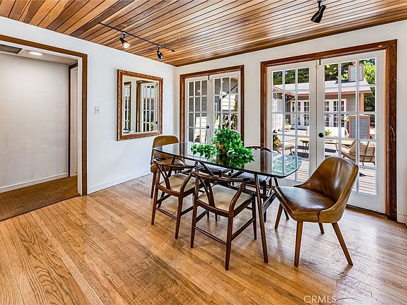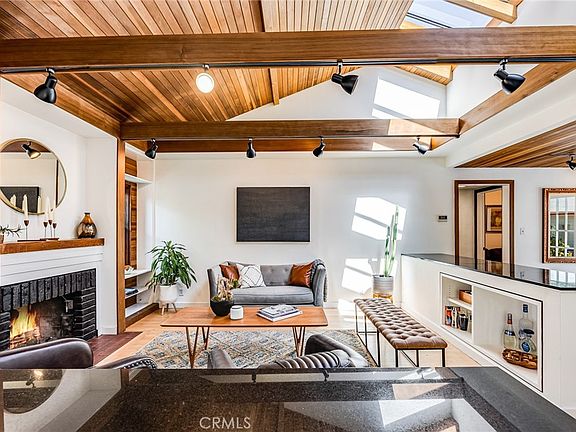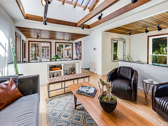 This one-of-a-kind architectural retreat is located in a desirable Sherman Oaks neighborhood. French doors from every main interior space open to a private courtyard deck. The light filled living room features include wood vaulted ceiling, exposed beams, hardwood floors, wood-burning fireplace