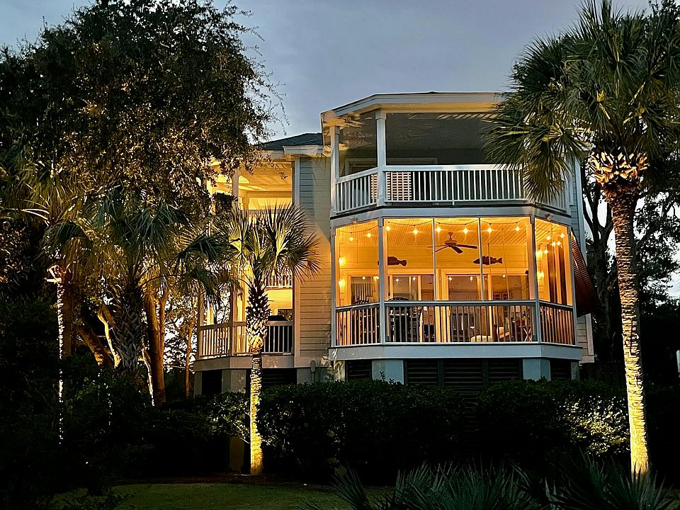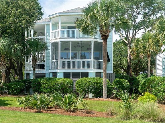 It's the best of both worlds! Island living in a Classic two story Charleston single family style home overlooking the 4th green of the famed ''Wild Dunes Links Course'' and yet only a short walk to the beach.. This meticulously maintained 4 bedroom-3 bath home has a bright open floorplan that flows seamlessly onto the porches, outside balconies... Relax on the bed swing or rock the afternoon away listening to your favorite tunes while watching golfers make a great putt! Enjoy the view of marsh wildlife with Herons perched in the live oaks along the lagoon. The kitchen has abundant custom cabinetry, granite counters, a center Island with Dacor gas cooktop/stove, the refrigerator (Kitchenaid), dishwasher, microwave, wine cooler are all stainless steel GE Monogram appliances.The living room has a fireplace with gas logs (2020), built-in book shelves & double sliding glass doors to the screened porch and deck area. Custom Detailed features throughout are: updated baths, hurricane film coated windows & doors, Plantation shutters, oak flooring, tiled baths, 9 ft ceilings, recessed lighting, ceiling fans, chandeliers, crown molding and central vacuum. Recent improvements: New roof (2021) complete exterior painting (2021)...new garage door/motor (2025), new propane tank (2025) both HVAC units (2023 & 2014) First floor has a bedroom that could be a second master with full bath, walk-in closet and a balcony overlooking the lagoon. Upstairs is the primary bedroom and bath with separate shower, soaking tub, his/her vanities and two walk-in closets. Sliding glass doors access the large private porch to relax and enjoy the breeze. Additionally, there are two guest bedrooms with a full bath. One is currently used as an office-the other bedroom also features an outdoor balcony. Yard was professionally landscaped with Palmetto trees, sago palms, magnolia trees, ornamental shrubs, grasses and lighting that accent the Live oaks. There is a large two car garage with plenty of storage, room for a golf cart and a cabana style shower to use when returning from the beach. Conveniently located to all the resort amenities: Property owners Beach house, onsite restaurants, two golf courses, tennis courts, fitness center, marina, bike, jogging trails and 2 ½ miles of shore line. It's a short drive to downtown Historic Charleston and easy access to the airport.