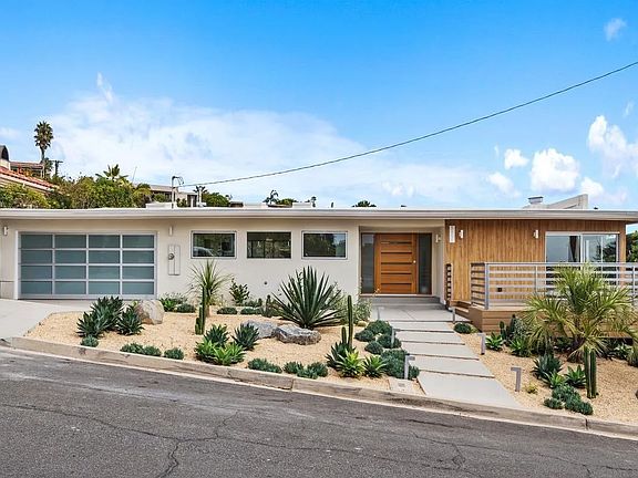 A rare coastal masterpiece—this reimagined single-level La Jolla retreat celebrates timeless mid-century design, modern luxury, and truly breathtaking ocean views. Perfectly sited on a private cul-de-sac, the home captures sweeping panoramas of the Pacific that stretch from sunrise to golden sunset, framed by walls of glass and soaring vaulted ceilings. Experience effortless indoor-outdoor living with a designer kitchen featuring rift-cut oak cabinetry, terrazzo floors, and Caesarstone counters that flow seamlessly to expansive terraces complete with an outdoor kitchen, fire pit, and multiple lounge areas. The spa-inspired primary suite offers a wet room with dual showers and a soaking tub overlooking lush canyon vistas. With room for a pool or ADU, this rare sanctuary delivers privacy, sophistication, and some of La Jolla’s most captivating ocean views—an extraordinary offering of coastal elegance.
